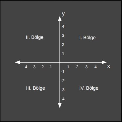 Yukarıda analitik düzlemi ve dört bölgesinin yerleşimini görüyoruz.