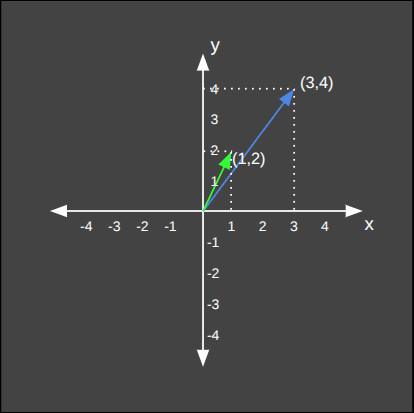 Basit gibi gözükebilir ancak bu işlem çok ciddi performans kazancına sebep olur. Bir resmi oluşturan milyon tane pixelin önce döndürme, sonra da büyütme matrisleri ile çarpıldığını düşünelim. Bunun yerine iki matrisi birbiri ile çarpıp sonucu pixel verileri ile tek seferde çarpmak demek, milyon kez az işlem yapmak anlamına gelir.Bu işlemi bir örnek üzerinde görelim. Vektörümüze öncelikle ayrı ayrı döndürme ve büyütme işlemleri uygulayalım. Ardından aynı işlemi, iki matrisi birbiri ile çarptıktan sonra toplu olarak yapalım ve iki sonucun eşit olduğunu teyit edelim. Öncelikle ayrı ayrı işlem yapıyoruz.