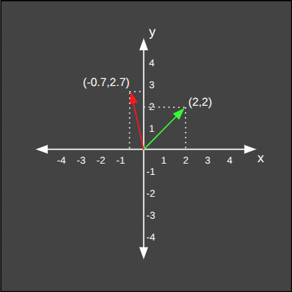 Vektörümüzü saat yönünün tersi yönünde 90 derece çevirdik. Şimdi sıra geldi döndürme matrisinin tersini bulmaya.