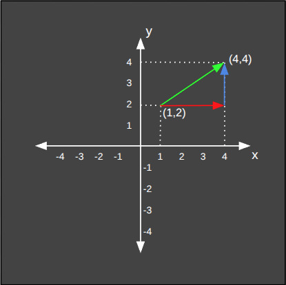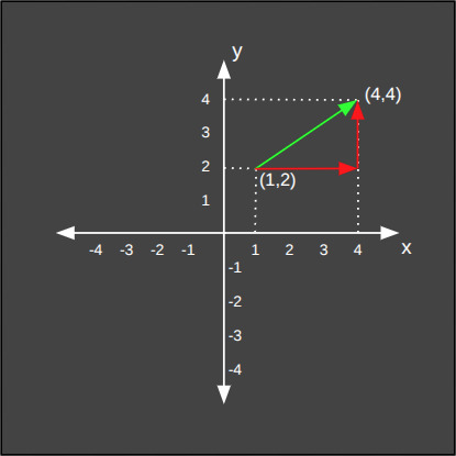 Aşağıda iki boyutlu düzlemdeki bir vektörün öklid mesafesinin hesaplanışını görüyoruz.