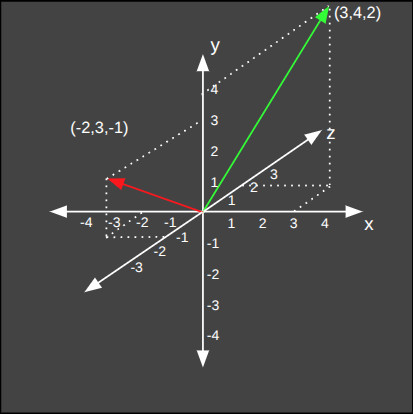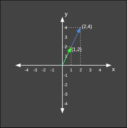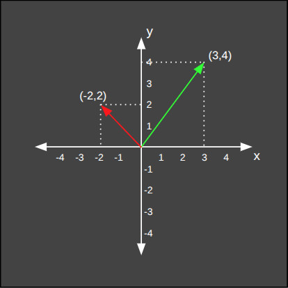 İki boyutlu bir düzlemde yer alan iki adet vektörü ele alalım. Bunların matematiksel olarak yazılışı ve iki boyutlu koordinat sisteminde gösterilişi aşağıdaki gibidir.